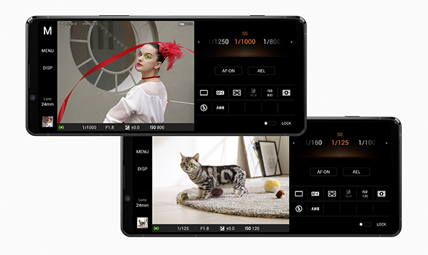 Xperia 1 IIは、ソニーのレンズ交換式デジタル一眼カメラαで培った技術により、60回/秒(標準レンズのみ)のAF/AE演算を行うコンティニュアスAFを可能にし、AF/AE追従最高20コマ/秒の高速連写を実現。動いている子どもや動物の撮影、動きが速く不規則なスポーツ撮影などにおいても、高い精度で被写体にフォーカスを合わせて追従するとしている。また、5Gの高速通信により、撮影した大容量データもより高速に送信可能。