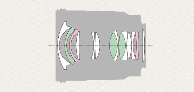 - 効果的に配置した高度非球面AA(advanced aspherical)レンズ2枚およびED(特殊低分散)ガラス3枚により、色にじみなどの諸収差を抑制し、星空や夜景などの撮影に適した高い点像再現性を実現