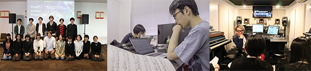 プロジェクト参加者とAI作曲風景