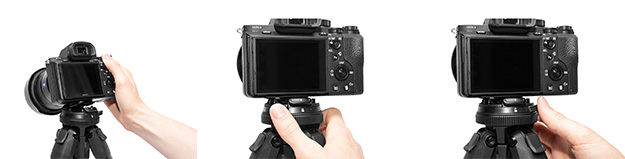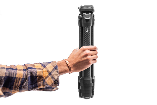 Travel Tripodは、三脚本体の無駄なスペースを徹底的に省き、ペットボトルほどの太さにまで削ぎ落としたデザインでありながら、高さや安定感、機能を犠牲にしない三脚。今までの三脚よりも早く展開できるレバーロック、使いやすい各部調整機構、スマートフォン用マウントを内蔵するなどの機能を備えている。デザインチームが4年の歳月をかけて作り上げており、軽く、コンパクトでありながら、望遠ズームレンズを装着した大型一眼レフにも対応する。主な仕様は以下の通り。