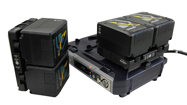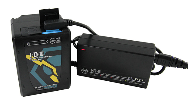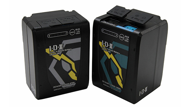 IDXの新製品、マイクロサイズバッテリー「Imicro-150」「Imicro-98」は、小型サイズだが最大出力154W(14A/11V時)と、大電流を流すことが可能なバッテリー。最大出力100WのD-Tapが2か所あり、ライト・モニター・レコーダーなどへも同時に電源供給可能。夜間撮影で便利なV-Torchも装備している。また、データ通信機能を搭載しており、カメラのビューファインダー上にバッテリーの残量表示が可能。