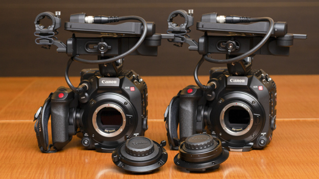 EOS C300 Mark III(左)とEOS C500 Mark II(右)。外見は共通で、センサーが異なる。大まかな仕様はほぼ共通だ