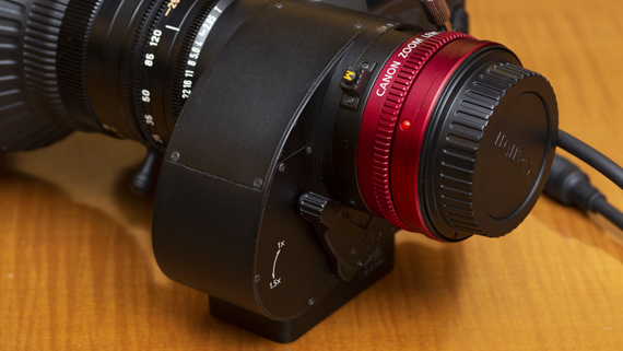 中川氏:放送用レンズで長い実績のある、内蔵エクステンダー機構に発想を得たアイディアです。標準はスーパー35mmで、内蔵1.5×エクステンダーを使用することでイメージサイズが拡大し、35mmフルサイズセンサーのカメラにも対応します。