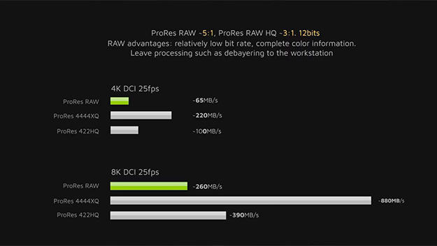 これとは別に、MAVO Edgeはカメラ内のProRes4444/XQ、ProRes422HQ、H264プロキシもサポートしている。ProRes RAWは、アップルのFinal Cut Pro XやFilmlight Baselightなどで編集およびグレーディングが可能。アドビのソフトウェアでは、今年中にネイティブでProRes RAWをサポートする予定。