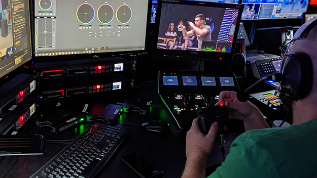 オースティンのスタジオでは、6台のURSA Broadcastが使用されている。これらの映像は、グラフィックやプロンプター、ゲーム機など他のソースと同様にSmart Videohub 40×40ルーターへと送信され、そこからATEM 4 M/E Broadcast Studio 4K、ATEM 1 M/E Advanced Panel、MultiView 16、SmartScope Duo 4Kモニターへとルーティングされる。