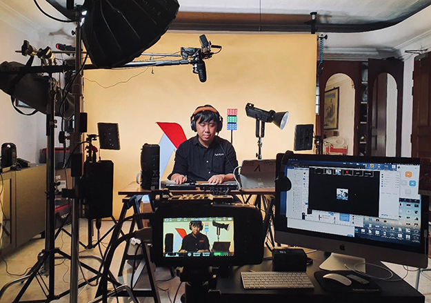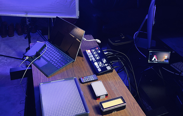 各配信は、リム氏と2名のスタッフで制作されている。1人がオーディオと配信パフォーマンスの外部モニタリングを担当し、もう1人がマスターコントロールとオンサイトでの配信パフォーマンスを担当している。2台のPocket Cinema Camera 4Kのうち1台はワイドショットに使用され、もう一方はクローズアップ用に頭上に設置されている。スイッチングはATEM Miniでライブで行われ、ピクチャー・イン・ピクチャーもライブで挿入している。頭上カメラの映像は、ワイヤレストランスミッターを介してATEM Miniに送信されている。