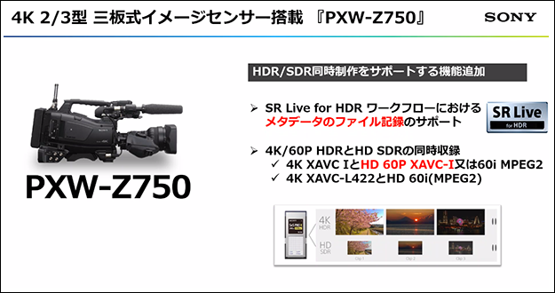 PXW−Z750にHDR/SDR同時制作をサポートする機能追加