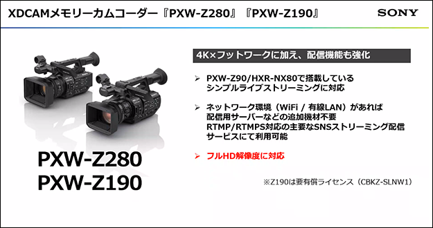 「PXW-Z280」と「PXW-190」は配信機能を強化