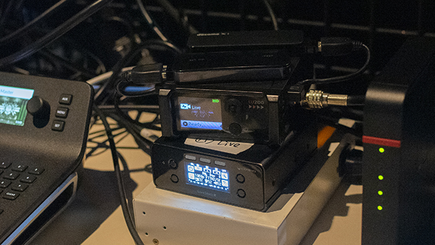 アンコール時に使用するワイヤレスカメラ。2階席からHDMIのワイヤレスユニットを使って、レシーバーに映像を送信