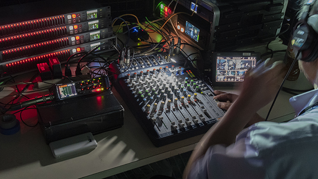 デスクにはデジタルミキサーがあり、音のリップシンクのディレイや、バックアップで96kHzのハイレゾ収録