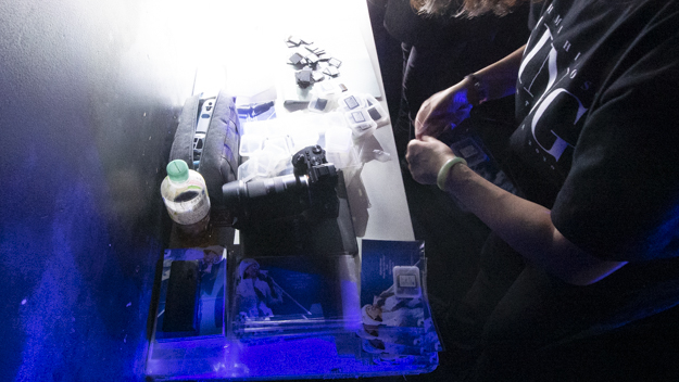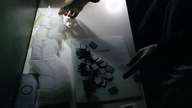 ここからは2人による並行作業。1人が抜き取ったSDカードを透明ケースに入れていく。
