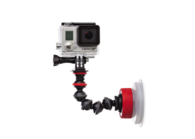 GoProマウント付きのサクションカップでゴリラポッドアームをサクションカップに装着可能。ツイストロックシステムで素早く滑らかな表面に簡単に装着できる。強度と柔軟性を備えたツール。希望小売価格税別3,360円。