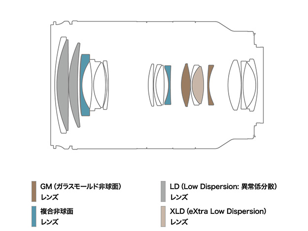 レンズ構成は14群18枚。GMレンズ(ガラスモールド非球面)や複合非球面レンズ、XLD(eXtra Low Dispersion)レンズ、LD(Low Dispersion:異常低分散)レンズといった特殊硝材レンズを適切に配置することで、色収差をはじめとした諸収差を効果的に抑制し、高い解像力を実現しているという。また、反射防止効果の高いBBAR(Broad-Band Anti-Reflection)コーティングが、ゴースト・フレアの発生を効率よく抑える。歪曲収差や周辺光量はカメラ側の補正機能を活用し、ズーム全域で画面の中心から周辺まで均一な高画質を達成している。