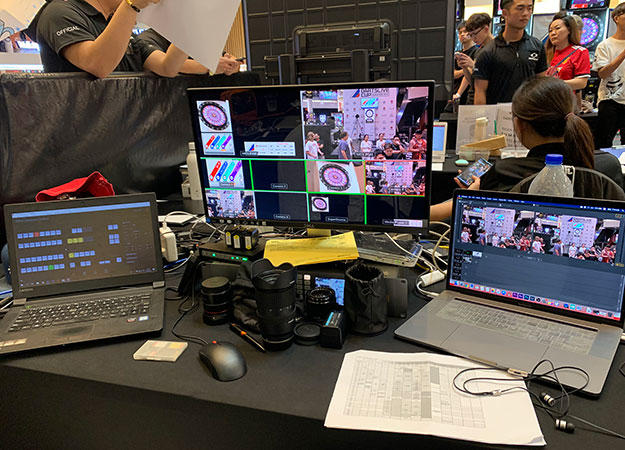 Blackmagic Designのワークフローは、セットアップや機材の移動が簡単であり、使用するスペースが小さいことも、9Darts.HKが同社の製品を選んだ重要な要素だという。シンガポールでの試合は、Bugis+ショッピングモールの2階で通常の営業時間内に開催されたため、制作がアスリートとモールの買い物客に与える影響を最小限に抑える必要があった。