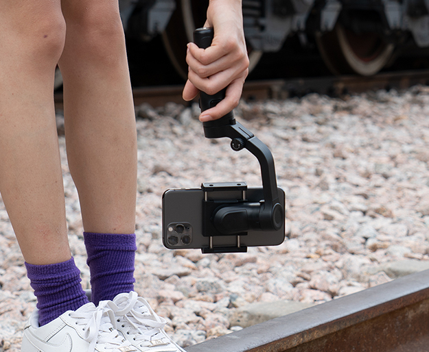 - ワンボタンで縦撮り、横撮りが簡単に。Bluetooth接続により、スマートフォンにプリインストールされているカメラアプリやアプリ「Feiyu ON」を制御可能