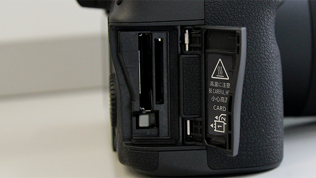 CFexpressカード(Type B)とSDメモリーカード(UHS-II対応)のデュアルスロットを搭載している。