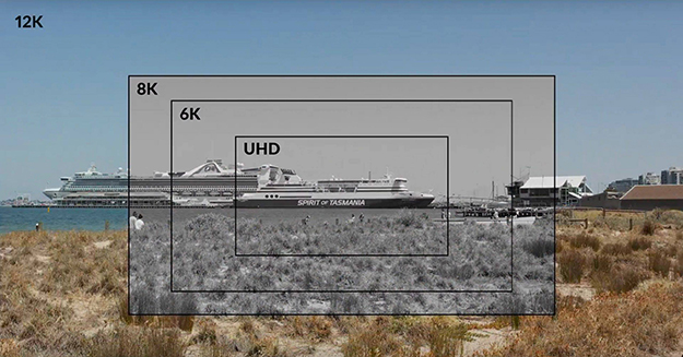 URSA Mini Pro 12Kは1台に複数のカメラを搭載しているようなカメラだという。標準的な解像度およびフレームレートで撮影でき、4K、8K、そして12Kではディテールが得られる。RAWの場合、60fpsで80メガピクセル/フレームに対応しており、1台のカメラで、完璧なスチルやモーションショットを同時にキャプチャできる。