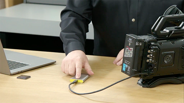 Blackmagic URSA Mini Recorderは独自の設計により、URSA Mini Proの後部で、カメラとバッテリーの間に直接取り付け可能。USB-C経由でコントロールできるので、SSDレコーダーの開始や停止を手動で行う必要はないとしている。