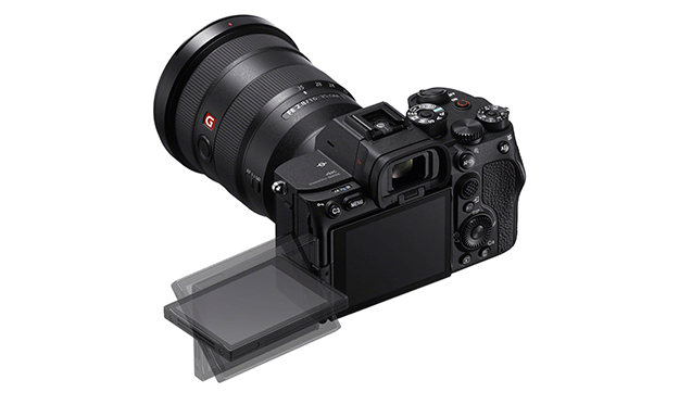 シーンに合わせて角度の調整が可能なバリアングル機構を、ソニーのミラーレス一眼カメラで初めて搭載。モニターは、約144万ドット、3.0型の大画面で、新たにタッチ操作に対応。録画中は、撮影画面に赤枠を表示することで、認識しやすくなっている。