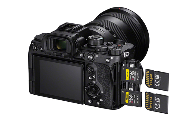 また、CFexpress Type AカードとSDXC/ SDHCカード両方に対応したスロットを2基搭載。4K 4:2:2 10bit XAVC S-I映像を、リレー記録で長時間撮影ができたり、2つのメモリーカードへの同時記録でバックアップが可能。CFexpress TypeAカードは、連続撮影や高ビットレート4K動画撮影に適した小型のメモリーカードで、その高速書き込み処理性能により、静止画・動画の膨大なデータ処理においてもカメラ本体のバッファーを迅速に解放し、クリエイターの撮影中のストレスを低減。また撮影後のワークフローにおいても、SDカード記録比で約1.7倍のPCへの高速データ転送が可能だという。