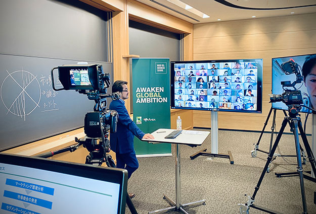 2018年に構築された遠隔授業用の専用スタジオは、育休中の女性に対して学びの場を提供する目的で構築された。同スタジオには、撮影用にBlackmagic URSA Viewfinderを搭載したURSA Mini Pro 4.6Kを2台、そしてBlackmagic Studio Camera 4Kが1台導入され、映像キャプチャ用にUltraStudio 4K Mini、録画用にHyperDeck Studio Mini、映像のスイッチングにはATEM Television Studio Pro 4Kが使用された。