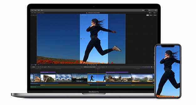 Final Cut Proの今回のアップデートにより、ソーシャルメディア向けコンテンツを用意する機能を搭載する。プロジェクトで使用中の各クリップは機械学習を用いて自動的に主要な動きが解析され、Smart Conformによるインテリジェントなトリミング作業を通じて、スクエア、縦型、その他の任意サイズのビデオに変換される。Instagram、Snapchat、Twitterのような人気のプラットフォームに最適だという。