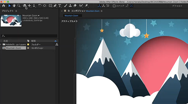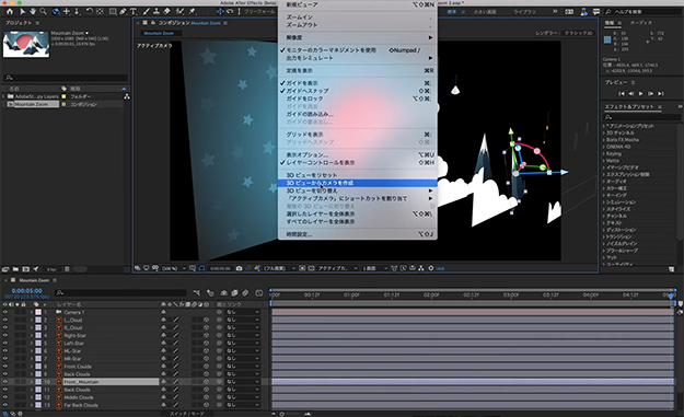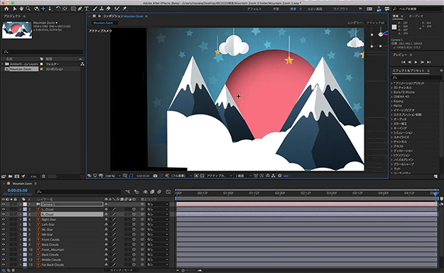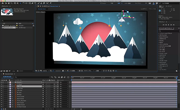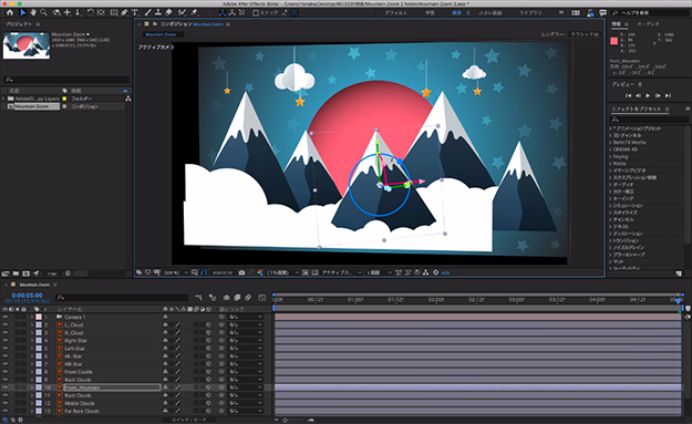 (01)Illustratorのファイルをレイヤーとして重ねた状態だと、After Effectsは2Dで見ているので、どのようにレイヤーが重なっているのかがわかりにくかった。
