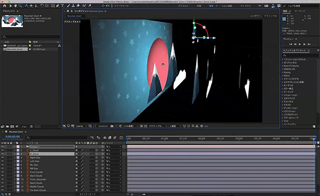 After Effectsにもいつくかの機能刷新が行われている。特に目玉は、3Dのエクスペリエンスの向上だ。今までも擬似的に3D空間として確認可能だったが、今回のバージョンアップによって直感的かつ、高速に編集、ワークフローを組むことが可能となった。