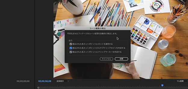 ■完成済みビデオシーケンスの編集点を自動で見つけ出す「シーン編集の検出」