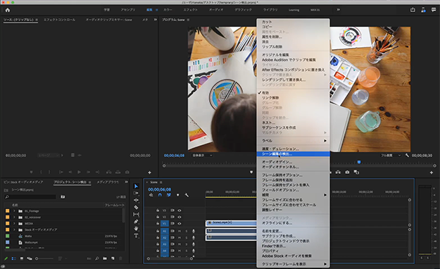 (01)タイムラインで対象の素材を選んで右クリックする。コンテキストメニューの「シーン編集の検出」を選択すると、実行される。