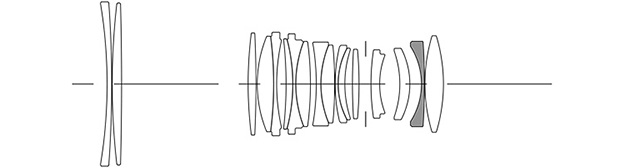 レンズ構成枚数12郡17枚(SLD1枚を採用)