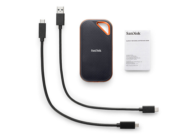 - 同梱品:エクストリーム プロ ポータブルSSD/USB-C to USB-Cケーブル/USB-C to USB-Aケーブル/安全および保証ガイド