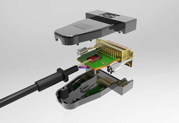 メタル筐体を採用したコネクタ部は電磁両立性に優れ、外来ノイズの干渉を受けにくく、本体からのノイズ発生も最小限に抑える。また、ケーブル内部の銅線・ファイバ線には細い銅線を編み込んだ編組銅線シールドを被せており、ケーブル自体の耐ノイズ性も向上させている。同製品シリーズの主な特長は以下の通り