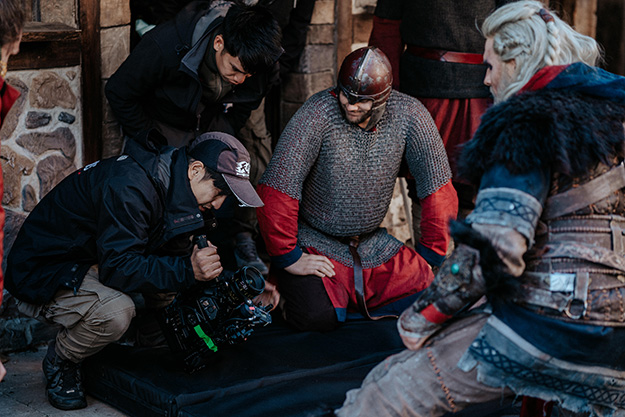 この組み合わせは初っ端から本当にすばらしかったですね。私は、衣装、武器、スキントーンのすべてのディテールキャプチャーしたかったのですが、URSA Mini Pro 4.6K G2は驚異的でした。今回の撮影に関しては全体的に満足していますが、特に、場面移行用のテイクとして撮影した酒場のシーンはハイライトでしたね。カメラが動いて人々の表情を捉えることで没入感のある雰囲気が形成され、視聴者はその場にいるような気分になります。