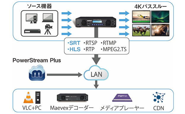 「Matrox Maevex 6100シリーズ」は、標準の1Gbpsイーサネット環境で4つの4K映像を同時にエンコードし、それぞれ異なるストリーミングプロトコルで配信可能なエンコーダー・デコーダーシリーズ。Matrox社独自のH.264コーデック・エンジンの搭載により、ビットレートを非常に小さく保ちながら、画質を犠牲にすることなく遅延を最小限に抑え、高品質なストリーミングの送受信・録画を実現するとしている。