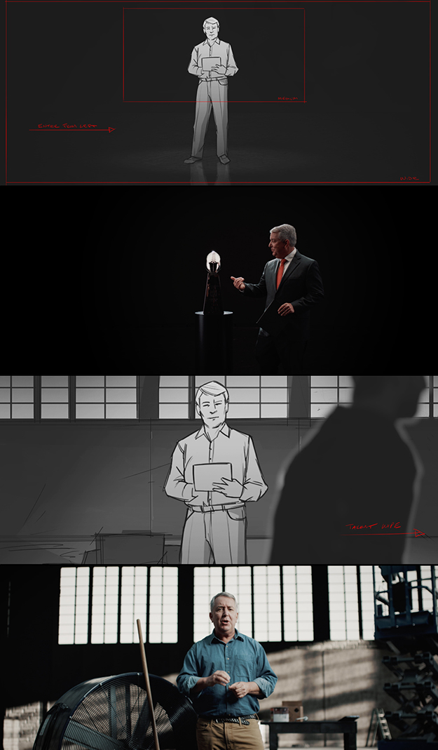 NBCのTODAY SHOWチームがインタビューの撮影と編集を担当したのに対し、当社のエディターはバーチャル制作されたスポットに取り組みました。バーチャル制作の臨場感を高めるポイントのひとつは、ポストプロダクションでのサウンドデザインです。最後の部分を見ると、ジャングルの中の鳥の声、ケリーが首を打つときの平手打ちの音、倉庫のカートの音などが聞こえてきます。
