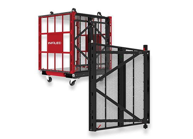 各キャビネットは、独自の後部三角折りたたみ式風防システムを採用。屋外イベントでの風速20m/秒に耐えることもでき、耐荷重と安定性の高さを備えており、スクリーンは最大24mの高さに達することも可能だという。1200x1200mmの超大型キャビネットは、ドリーからのリフティング操作により、設置時間を短縮するユニークなデザインを採用している。