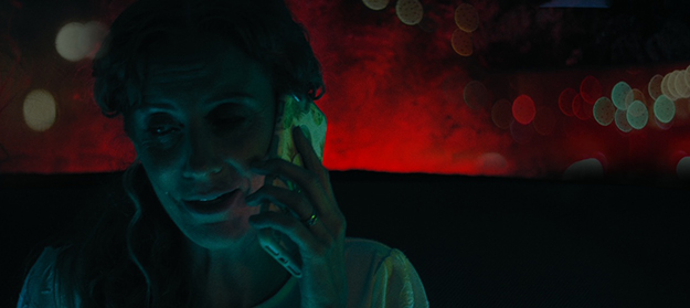 クレメンタインがロビーで霊能者の同僚と会話するシーンがあります。このロビーの照明は、薄汚れた白いプラスチックに覆われた年代ものの蛍光灯でした。照明を取り替えたり追加の照明を用意する時間も予算もなかったので、自然光で撮影したのですが、このシーンのルックは私の一番のお気に入りになりました。Blackmagic Designのカラーサイエンスは、フィルムストックのようなルックなので、このように優れたフィルムのテクスチャーを実現できます。