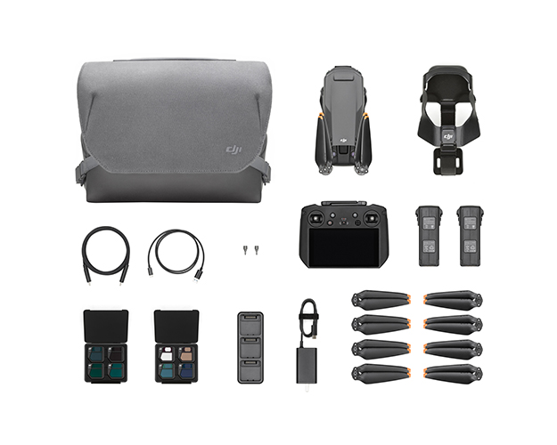 Apple ProRes 422 HQ 動画撮影に対応し、1TB SSDが内蔵されたMavic 3 Cineを同梱。Mavic 3 Cine機体、インテリジェントフライトバッテリー×3、DJI RC Pro、バッテリー充電器、バッテリー充電ハブ、ストレージカバー、プロペラ1組×6、NDフィルターセット(ND4/8/16/32)、NDフィルターセット (ND64/128/256/512)、コンバーティブル キャリーバッグ、DJI 10Gbps高速データ転送ケーブル他