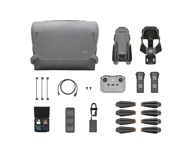 Mavic 3機体、インテリジェント フライトバッテリー、RC-N1送信機、RC-N1ケーブル×3、バッテリー充電器、ストレージカバー、プロペラ1組×3他 - DJI Mavic 3 Fly Moreコンボ:税込341,000円