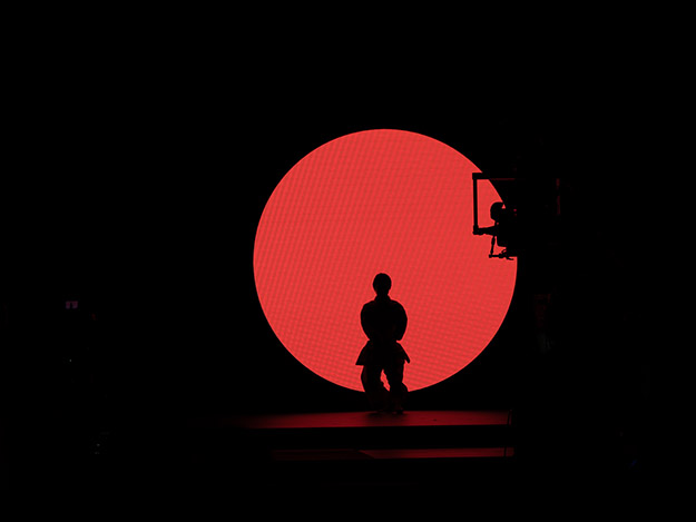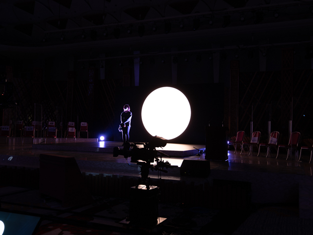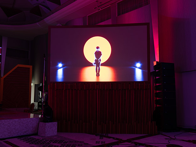 前日設営時のLED調整については、ヒビノのプロジェクトマネージャー萩原文雄氏に聞いた。萩原氏は、システム面から照明、カメラまで全体の案内やコーディネーターを担当した。「今回のプロジェクトは相当なプレッシャーがありましたが、弊社取締役常務執行役員である芋川からの多大なバックアップもあり、成功に導くことができました」と振り返った。