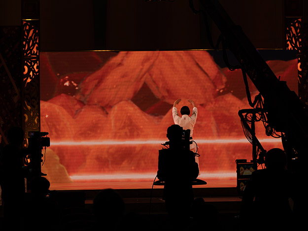 ステージ背面のLEDは、ROE Visual製BlackOnyX2(BO2)で2.84mmピッチ。床面のLEDはBlack Marble 5(BM5)で5.77mmピッチの2面構成。床は正方形で6m×6m、壁はワイド6m×縦は3m。LEDはステージのセットの一部でもあるので、フラットな形で会場の来場者にも違和感がないように配慮も行われていた。