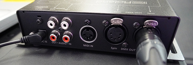 同製品は、映像や音声を入力すると映像信号/音声信号と同期したDMX信号を出力し、ダイナミックな照明効果を自動生成する。