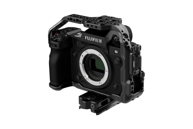 Wooden Cameraの富士フイルムGFX100SとX-H2S用のオーダーメイドケージは、それぞれホットシュークランプ、フォーカルプレーンマーク、着脱式ケーブルクランプ、安全ピン用の凹部を備えた1/4″-20および3/8″-16マウントポイントを豊富に装備しているのが特徴。両ケージともフルラップアラウンドデザインで、オープン/ユニバーサルケージに比べ、保護と安定性が向上したという。両ケージとも、ARCAとアリミゾ式安全システムを備えた新しいLW 15mmベースプレート(GFX100S、X-H2S)と組み合わせて使用する場合、光学中心が正確になるように、カメラに合わせた高さを採用している。