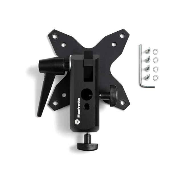 VESA規格互換により外部モニター、PC モニター、スクリーン等をしっかりと固定できるVESAモニターマウント。業界標準に準拠した75mmx75mmおよび100mmx100mmのVESA規格と互換性があり、重量が30kgまでの外部モニター、PCモニター、テレビ画面を安全に取り付けられるという。持ち運びのときは突起部分が少なくなるようにモニターに対し、平行にたたむことができる。
