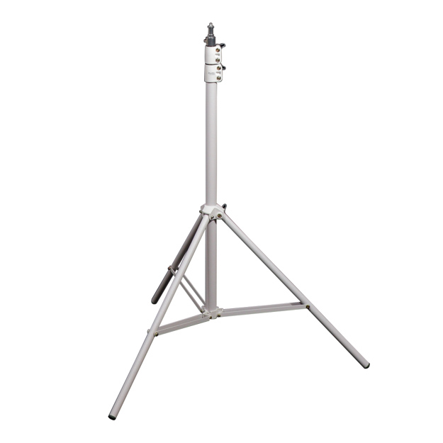 発売中の「PX 200 Light Stand」のパールホワイトカラー。ブライダル会場やコスプレスタジオなど、セットの雰囲気に合わせるためのカラーだという。耐久性に優れたダイキャストスチールを使用した軽量ライトスタンドで、ポールと脚の表面は滑りくく反射しにくいフロスティング加工仕様。耐荷重5kg、全伸高2m。