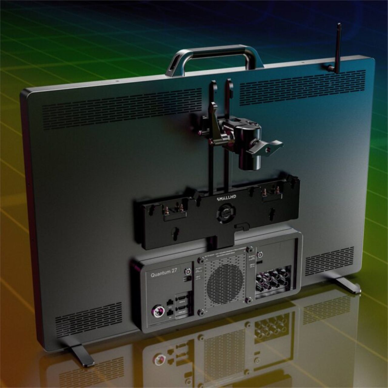 Quantum 27は、扱いやすいハンドルや足、背面のユニバーサル100mm VESAマウントやARCAレールなどの機能を提供することで、セットライフを最適化したという。同モニターには、触覚コントロールのためのダイヤルがあり、Quantum 32より約3kg軽い。電源機能には、2×2ピンLEMO電源出力、USB-C電源出力、USB-A電源出力があり、ゴールドマウントまたはVマウントバッテリーブラケットに対応している。
