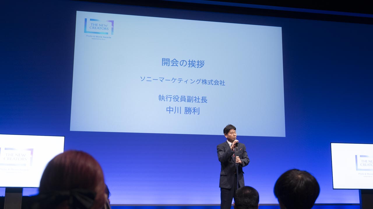 中川氏はまず、受賞したクリエイターへ祝辞を贈った。自身も応募作品をすべて鑑賞したと言い、「多くの才能に溢れた素晴らしい作品に触れることができ、大変感動した」と感想を述べた。続いて、本アワード設立の経緯について説明。アワードは、「クリエイティビティとテクノロジーの力で、世界を感動で満たす」というソニーグループの存在意義を実現するため、ソニーマーケティングが中心となり、ソニー・ミュージックレーベルズ、ソニー・ピクチャーズ、ソニーPCLの4社共同で立ち上げたものであると語った。