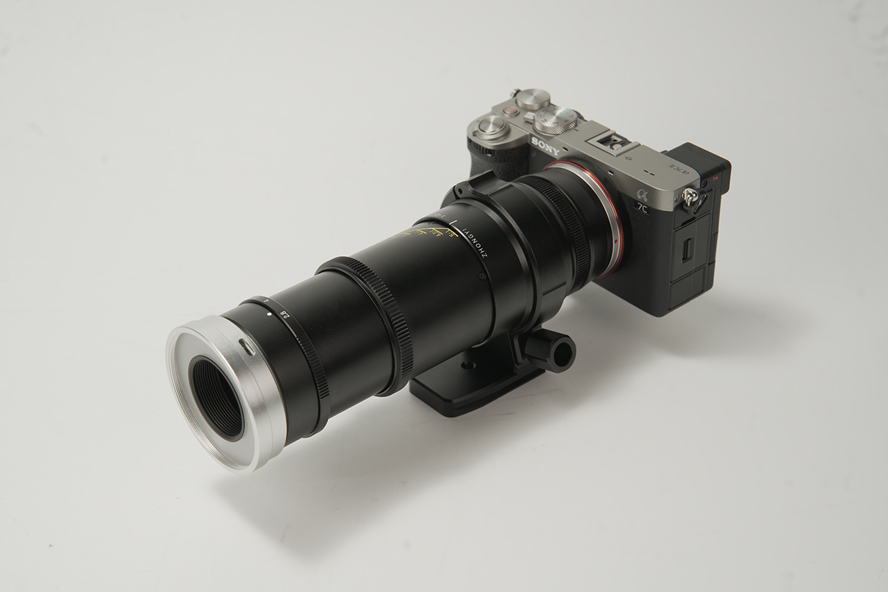 レンズ本体は耐久性の高い金属製で、安定した設置を補助するアルカスイス互換のレンズサポートが付属する。レンズ先端にはLEDライトも内蔵されており、被写体の照明を補助する。