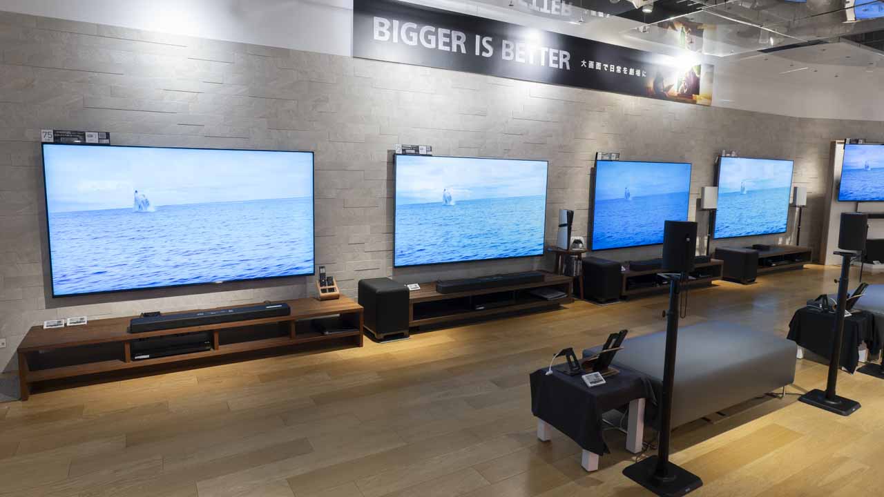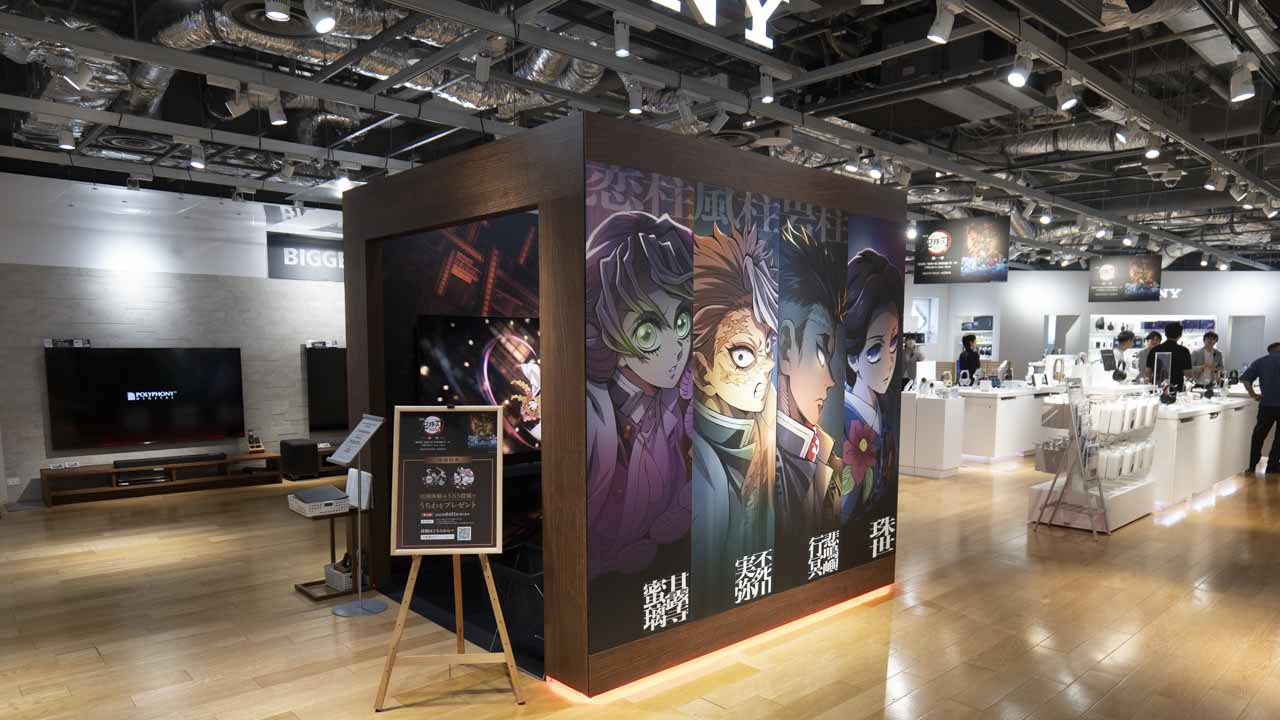 5階のエントランスで来場者を迎えるのが、エンターテインメントシアター「SHIKAKU」である。現在は人気コンテンツ「鬼滅の刃」とのコラボレーション企画が展開されており、作品ファンを店舗へと誘い、そこからソニー製品の魅力に触れてもらう役割を担っている。シアターでコンテンツを体験した来場者は、自然な動線で奥のBRAVIAコーナーへと導かれる設計だ。